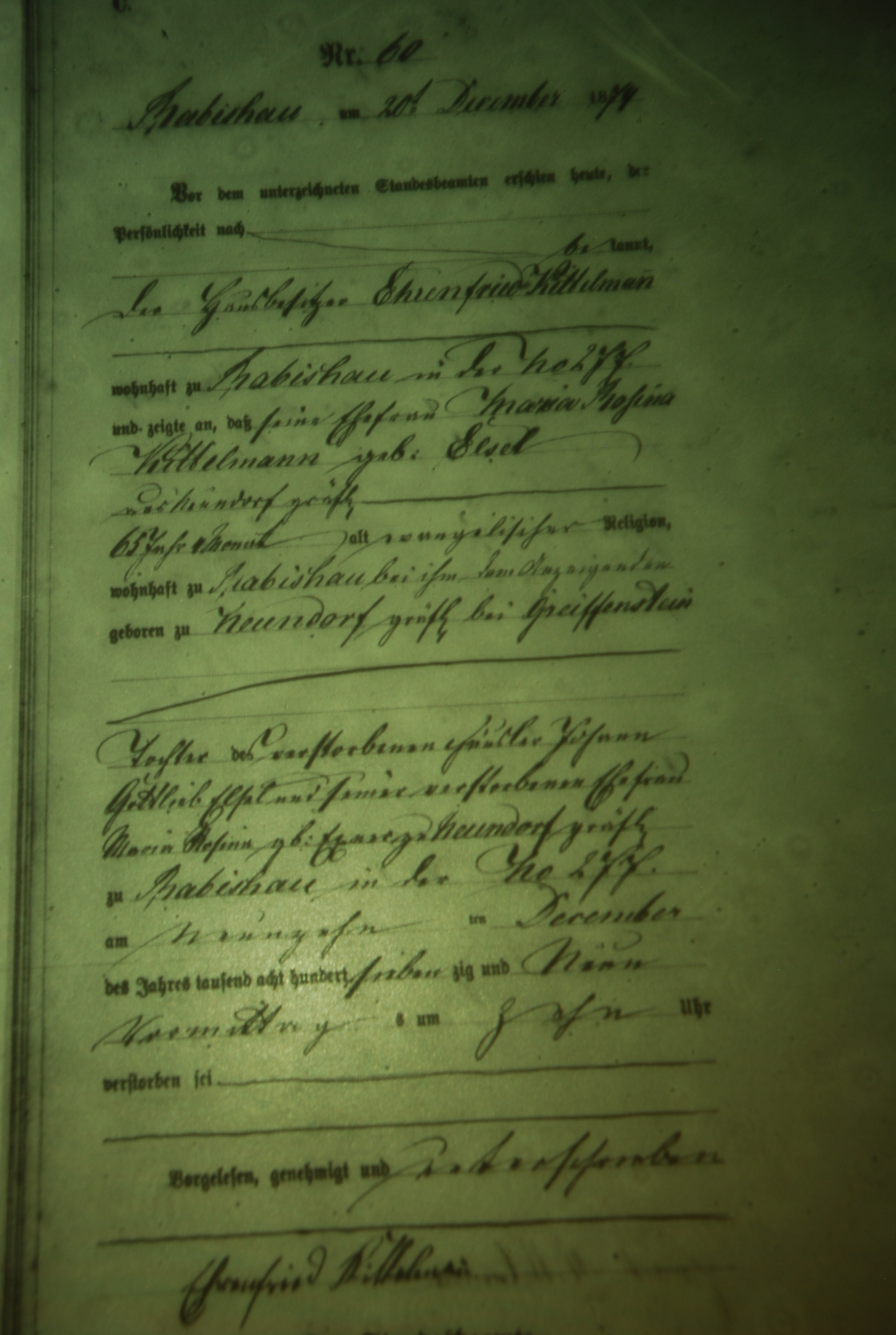 Maria Rosina Elsel Geburt: 20. August 1814 26 22 — Neundorf Kreis Greiffenberg Tod: 19. Dezember 1879 — Rabishau |